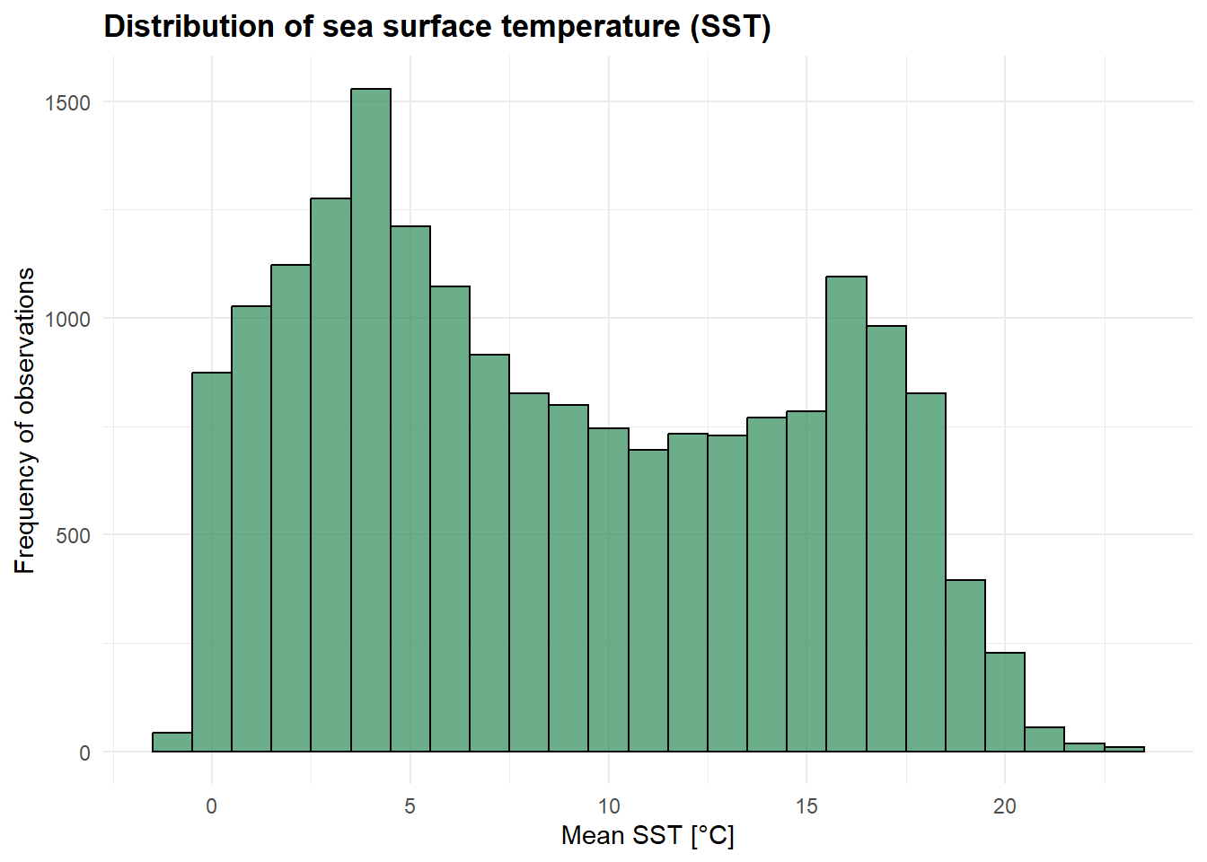 summary(data %>% select(total_count, mean_sst, mean_traffic)) total_count mean_sst mean_traffic