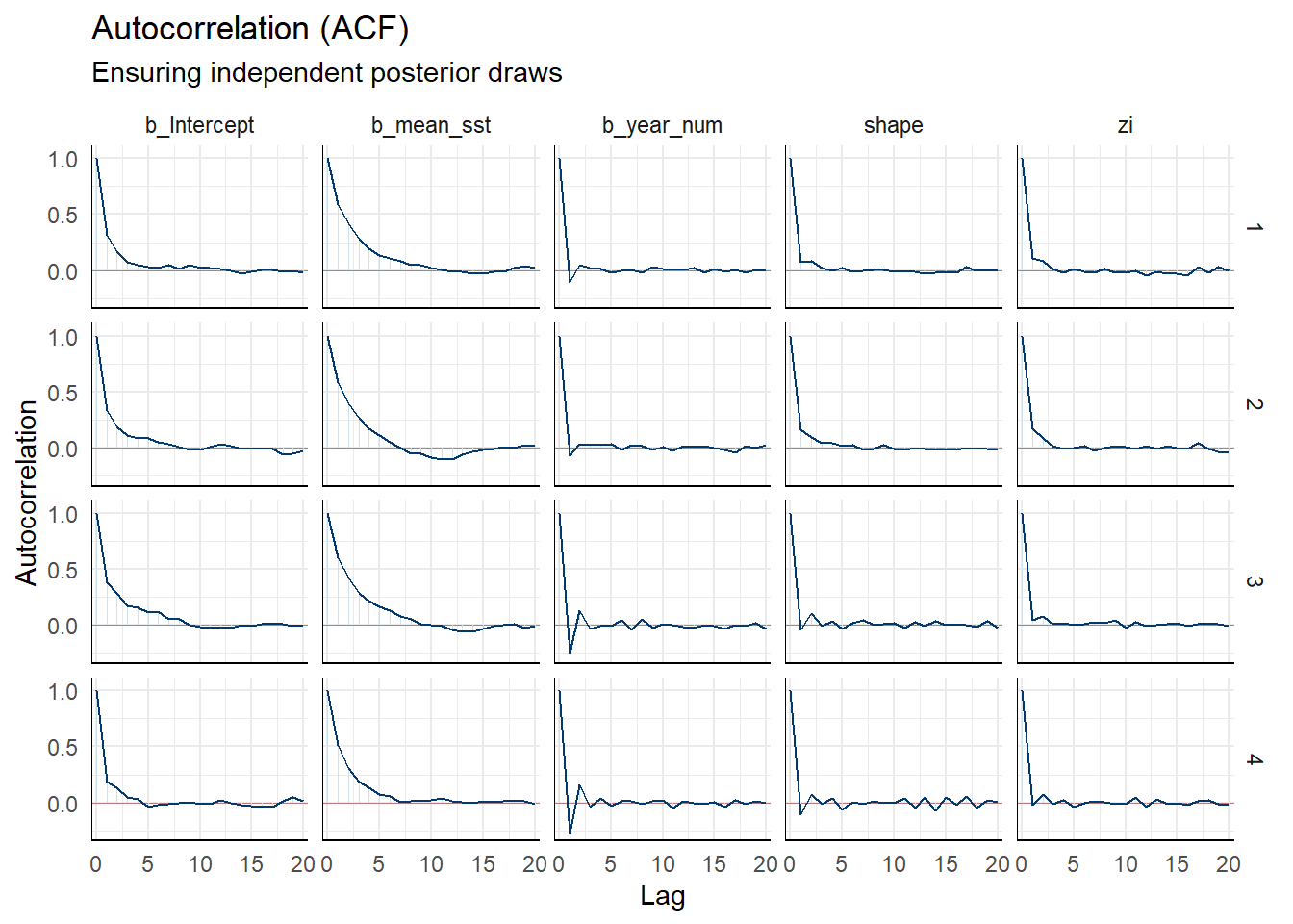 Figure S3. Autocorrelation Function (ACF) of posterior draws.